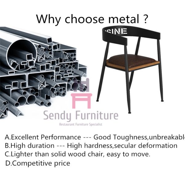 Compare with solid wood frame dining chair, metal chair provide wider possibility regarding the frame finish, and more durable.